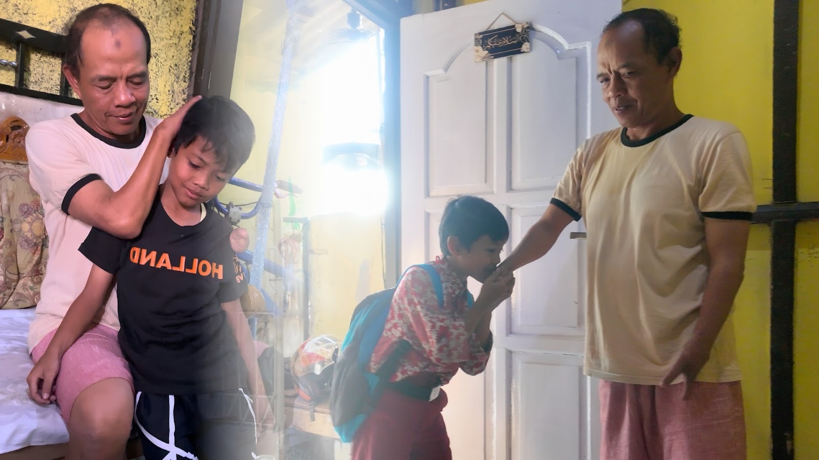 “Harapan saya cuma satu… anak saya bisa sekolah tinggi, sampai kuliah. Biar jangan kayak bapaknya,” katanya pelan.