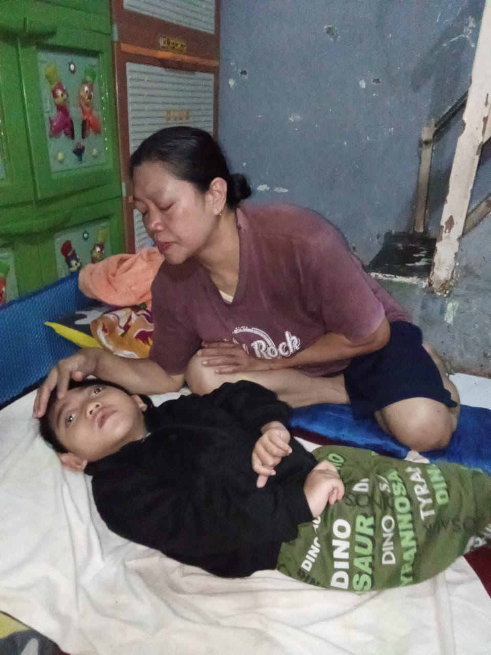 Meski begitu, Bu Entin tetap berjuang. Menggendong Raddeya, berjalan kaki menuju tempat terapi, demi satu harapan: anaknya bisa membaik.
